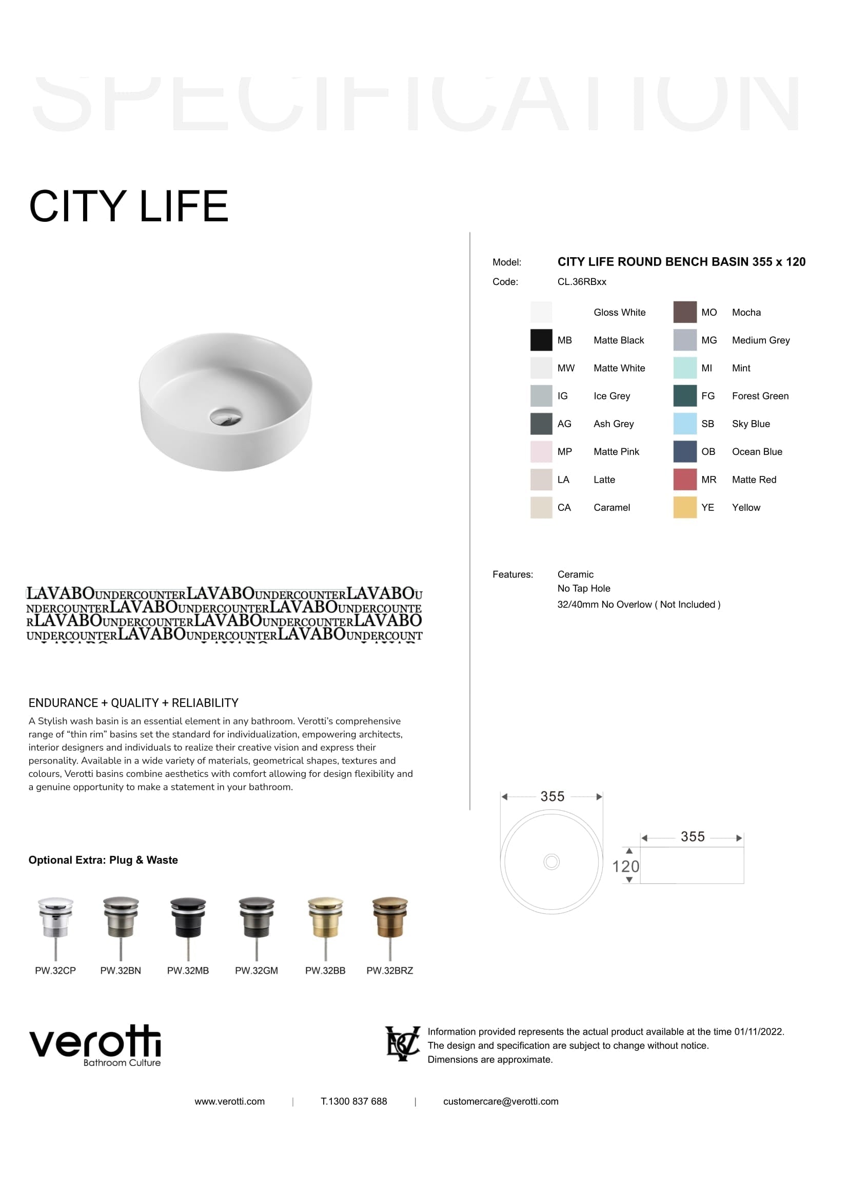 - Ceramic: Gloss White, Matte Black, Matte White, Ice Grey, Ash Grey, Matte Pink, Latte, Caramel, Mocha, Medium Grey, Mint, Forest Green, Sky Blue, Ocean Blue, Matte Red, Yellow