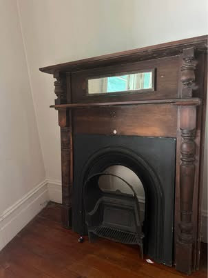 EDWARDIAN TALL OAK FIRE SURROUND MIRROR MANTLEPIECE WITH CAST IRON FIREPLACE