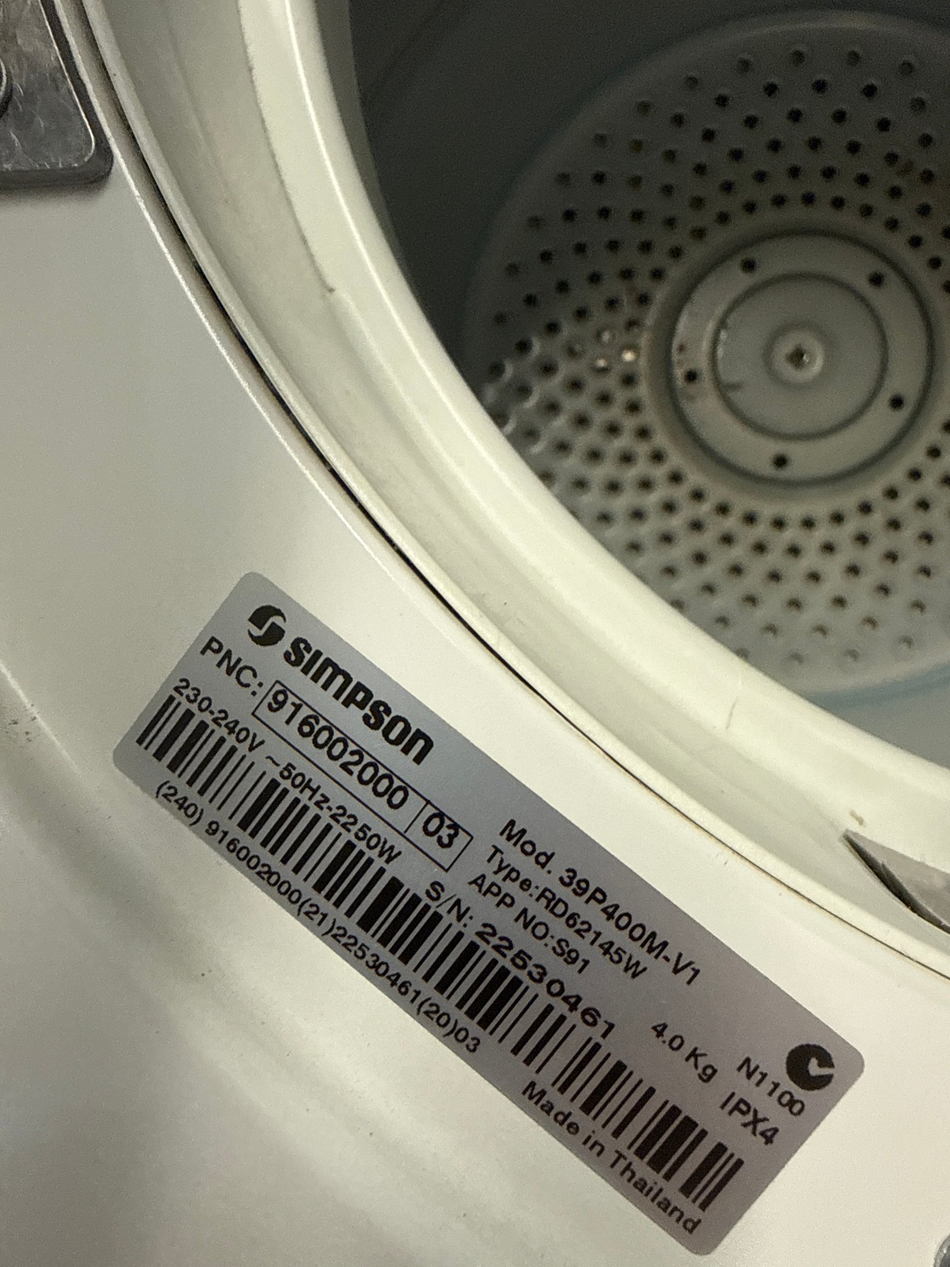 NEAR NEW Simpson 39P400M 4kg Vented Dryer – Quality Used | Tested & Cleaned | Reno Spares